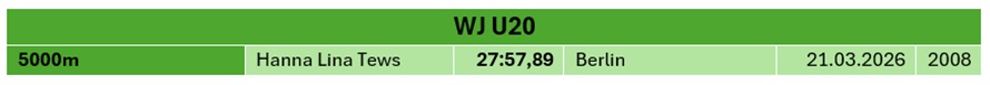 Aktueller Stand: 21.03.2026 - Die Hallenbestenliste steht weiter unten!