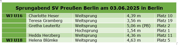 Sprungabend des SV Preußen am 03.06.2025 - Gretha Leuteritz erstmals über 5,00 m im Weitsprung