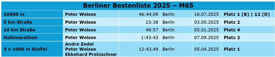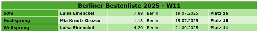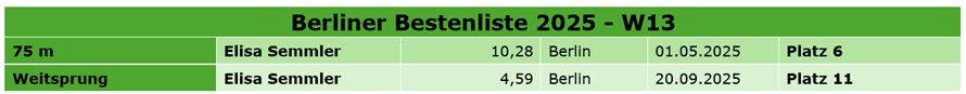 Die hier abgebildete Bestenliste wird aktualisiert, sobald auf der Homepage des Berliner Leichtathletikverbandes eine neue Aktualisierung veröffentlicht wird.