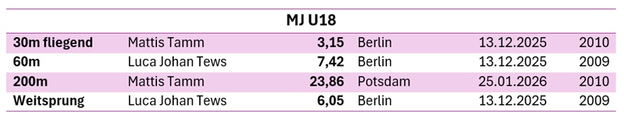 Aktueller Stand: 18.01.2026 - Die Hallenbestenliste steht weiter unten!