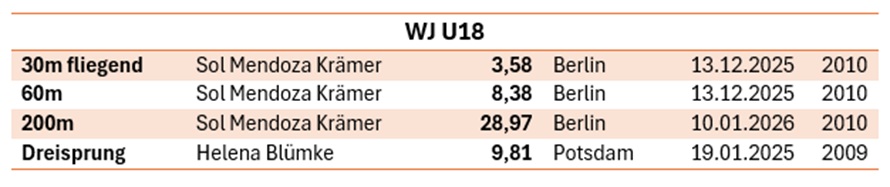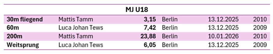 Aktueller Stand: 11.01.2026 - Die Hallenbestenliste steht weiter unten!