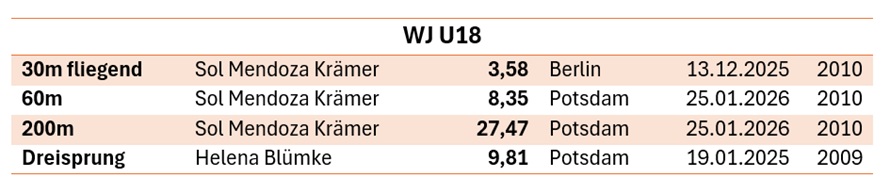 Aktueller Stand: 18.01.2026 - Die Hallenbestenliste steht weiter unten!